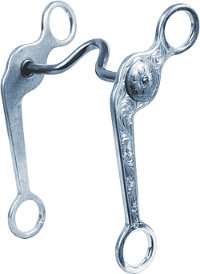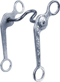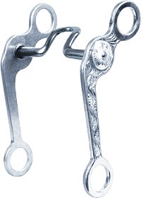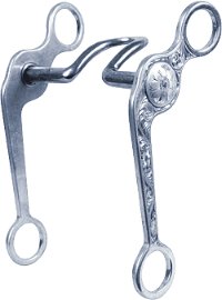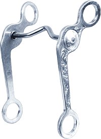 These bits allow natural movement of the horse's head. The lightweight aluminum shanks provide authority when needed with a reduced angle that increases signal and slows response from the rider's hand. Inlaid copper bars in the sweet iron mouthpiece increase salivation and keep the mouth moist and sensitive. Hand engraving on the shanks and silver conchos make these bits distinctive in or out of the show pen !