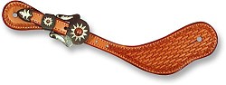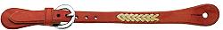 5/8" Harness Leather Spur Strap With Rawhide Lacing SS58H 5/8" Spur Strap with rawhide lacing and stainless steel buckle. Price: US $ 39.00 Quantity: 5/8" Latigo Leather Strap SS58L 5/8" Spur Strap with stainless steel buckle. Price: US $ 28.00 Quantity: Cowboy Spur Strap With Copper Flower Buckle SSCCFB Cowboy Spur Strap, basket stamped, latigo lined, and sewn edges with Copper Flower buckle. Available in Large and Medium. Price: US $ 143.00 Size :Large Medium Unit Price: Quantity: Cowboy Spur Strap With Flower Bubble Buckle SSCFBB Cowboy Spur Strap, basket stamped, latigo lined, and sewn edges with Flower Bubble buckle. Available in Large and Medium. Price: US $ 130.00 Size :Large Medium Unit Price: Quantity: Cowboy Spur Strap With Iron Cross Buckle SSCICB Cowboy Spur Strap, basket stamped, latigo lined, and sewn edges with Iron Cross buckle. Available in Large and Medium. Price: US $ 139.00 Size :Large Medium Unit Price: Quantity: Cowboy Style Natural Skirting Leather SSC Cowboy Spur Strap, basket stamped, latigo lined, and sewn edges with stainless steel buckles. Price: US $ 59.00 Size :Adult Youth Unit Price: Quantity: