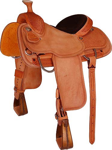 Fit for the horse, comfort for the rider, and traditional looks were the design reasons for these NRS Pro Series Roper Saddles. Olin Young with a leg cut is what we call the tree these saddles are built on. It is built on quarter horse bars which will fit practically every horse. The swells are 7-1/2" high and 13" wide and the cantle is 3-1/2" tall. It is rigged in the full double position, features traditional skirts with tooled wear leathers and is made from premium, extra-heavy Hermann Oak skirting leather. We spend extra time on the ground seat of all our saddles to make them as comfortable as possible for the rider. The Basket Stamp Roper Saddle includes the classic basket stamping on the swells, cantle, back housing and the wear leathers and also has a camouflage tool border stamp on every edge. This saddle comes with latigo tie straps and the NRS contoured 6" flank cinch. The NRS Pro Series Basic Roper Saddles are the perfect traditional saddles for every roper or rancher.