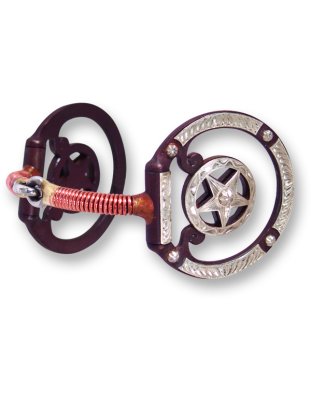 The Star Center Dee Ring is made in browned iron and trimmed in band engraved German Silver. This 3.5" dee has more weight for a better feel in your horse's mouth. It can be used for every day riding, but is beautiful enough to show in.