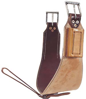 The saddle pad industry has shown the importance of contouring the saddle pad to fit the horse's back. Now NRS has designed the back flank to fit the contour of your horse's barrel. Contouring the back flank is very important to the team roping and calf roping horse. The horse is continually getting pressure from the back flank and if you do not keep your back flank tight, your saddle will rock, causing your horse unnecessary pain. The new shape also keeps the whole cinch against the horse without gapping. Made form heavy harness leather and lined with latigo. The buckles are stainless steel with a seamless roller buckle that will not lock-up or breakdown. Comes complete with a hobble strap.